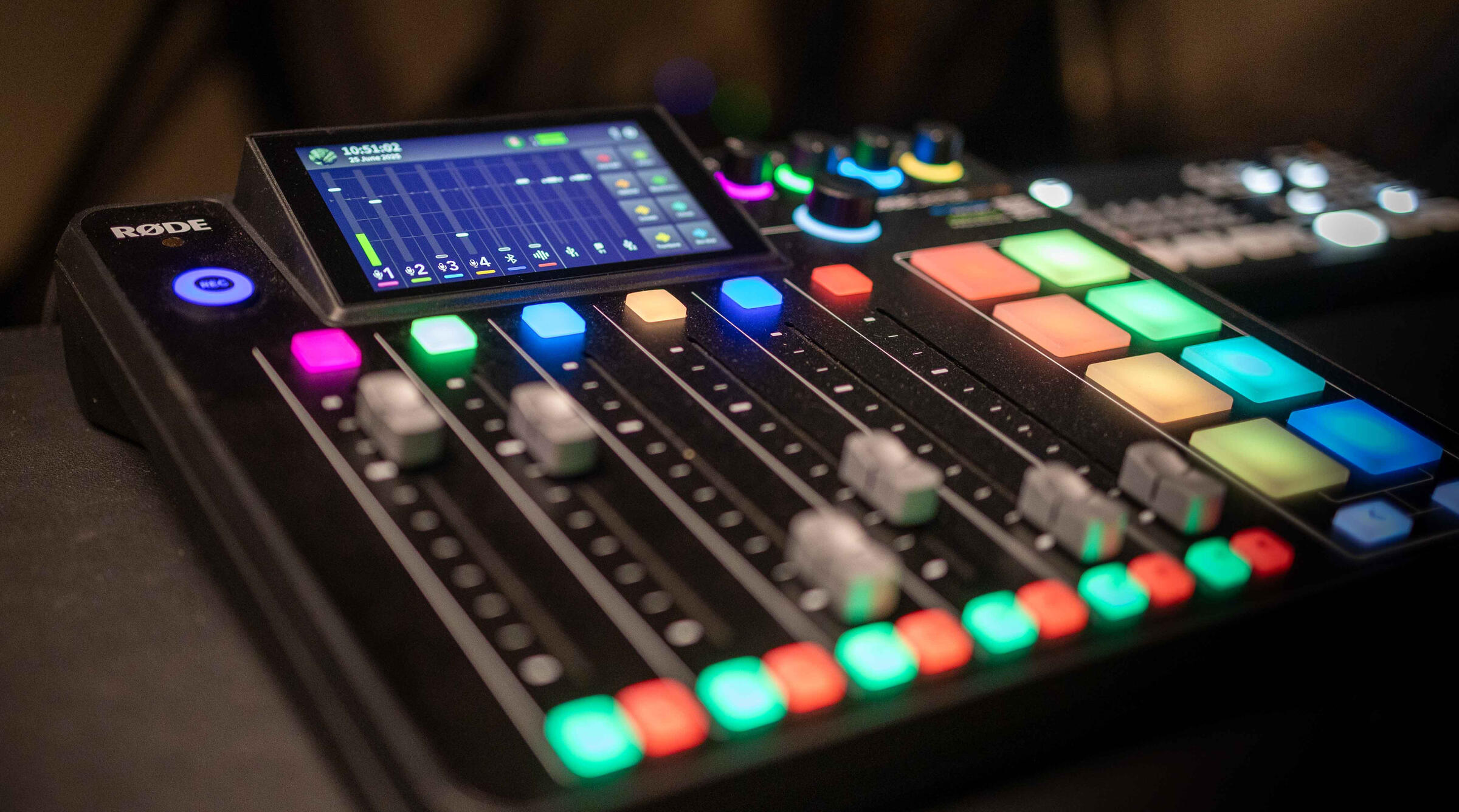 - 4x Rode studio microphones- Rode 4-channel digital audio mixer for live control & multi-track recording- 3x Canon 4K video cameras for multi-angle setups- Blackmagic ATEM Pro ISO video mixer (4 digital inputs, live switching)- Professional LED lighting- Sound-dampened acoustic treatment+ 3 visual recording decorations: 2 dark, 1 light